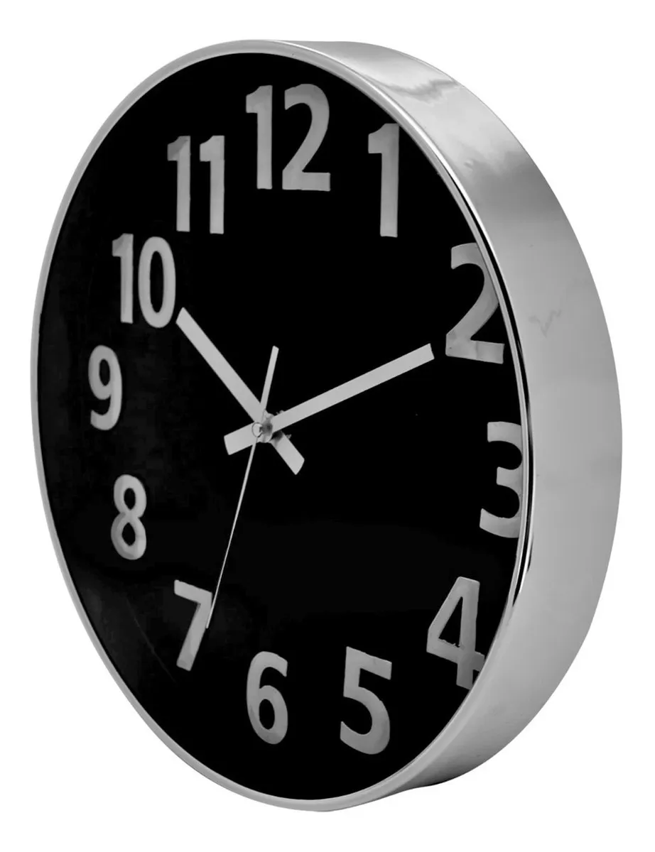 - Relógio de parede prata, analógico, com ponteiro contínuo e diâmetro de 25cm, proporciona uma leitura fácil e precisa do tempo.