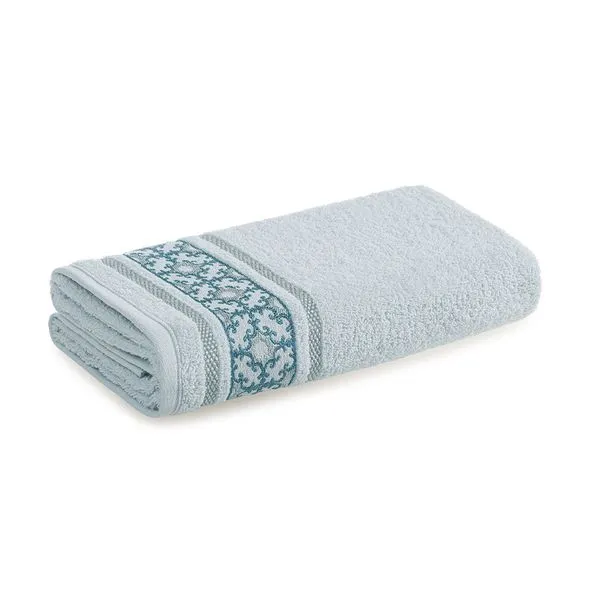 A Toalha de banho Abrantes, tem corpo felpudo azul com bordado aplicado na barra em cores da paleta. Sua composição de 100% algodão no corpo e 3% de poliéster no bordado o tornam uma linda toalha que vai adicionar estilo para a decoração e tornar o pós-banho mais aconchegante.